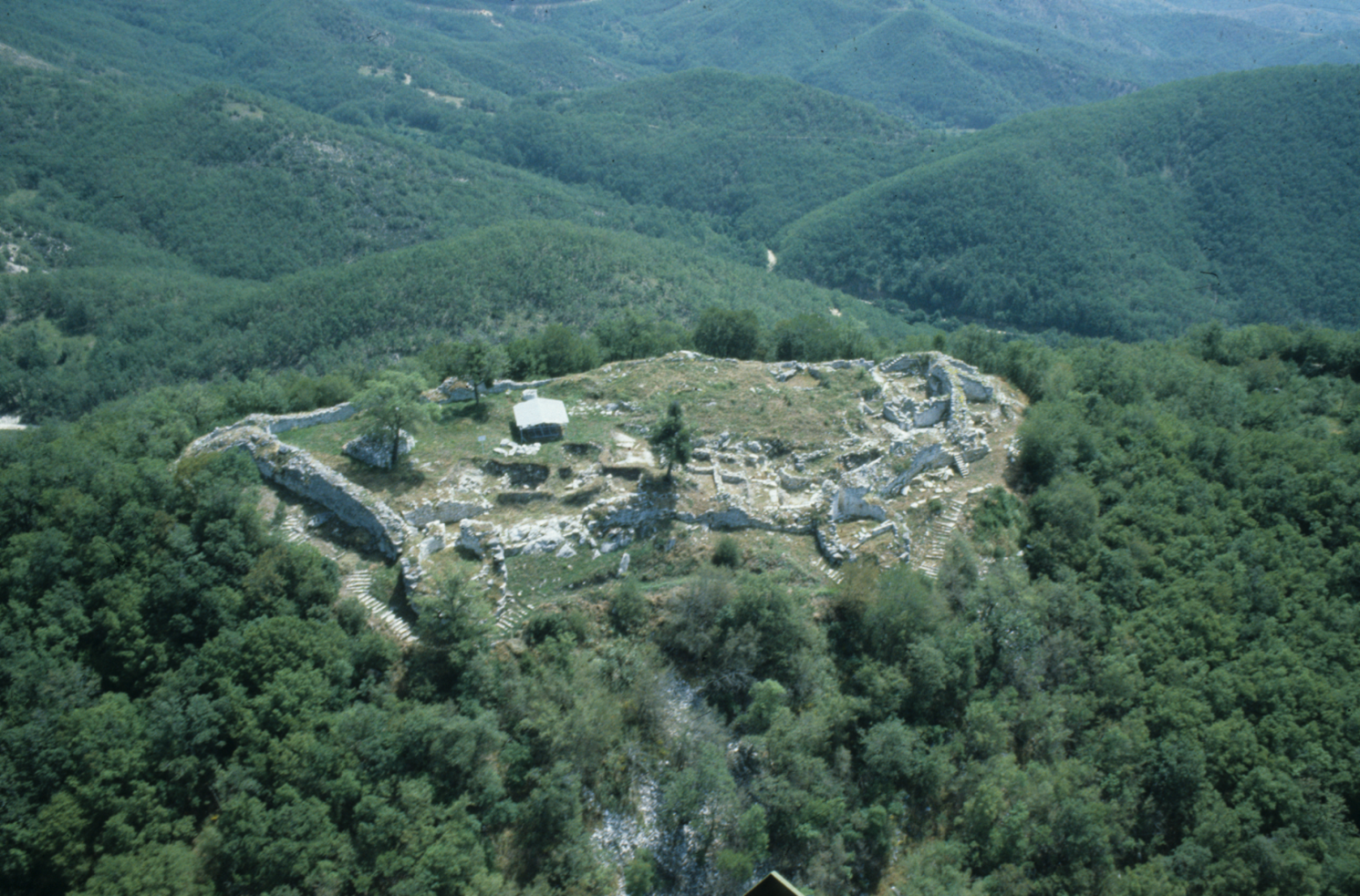 Ανακαλύφθηκε το 1973 από τον κ. Δ. Τριαντάφυλλο και ανασκάφτηκε από τον ίδιο το 1975-1992. Η ανασκαφική έρευνα έδειξε χρήση του χώρου από τον 4ο αι. π.Χ. μέχρι τον 6ο αι. μ. Χ. και τέσσερις κύριες οικοδομικές φάσεις, από τις οποίες η πρώτη συνδέεται με τον βασιλιά Φίλιππο Β΄ της Μακεδονίας, η δεύτερη με την εγκαθίδρυση του ρωμαϊκού ελέγχου στη Μακεδονία μετά τη μάχη της Πύδνας το 168 π.Χ., η Τρίτη με τις επιθέσεις των Κοστωβώκων γύρω στο 170 μ.Χ., ενώ η τέταρτη ανάγεται στις αρχές του 3ου αι. μ.Χ. Περιορισμένη χρήση του χώρου παρατηρείται και στα χρόνια του Ιουστινιανού (6ος αι. μ. Χ). Ο περίβολός του έχει σχήμα ακανόνιστου τραπέζιου με περίμετρο 245μ. και μέγιστο σωζόμενο ύψος 3,50μ. Τις γωνίες του περιβόλου ενισχύουν δύο τετράπλευροι πύργοι και τέσσερις κυκλικοί. Από τις πύλες ξεχωρίζει η λεγόμενη «Πύλη του Πριάπου».